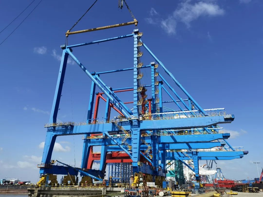 9月底以来,钦州大榄坪南作业区9号10号泊位工程自动化双小车岸桥已完成两台大梁吊装,标志着项目岸桥进入核心的总装阶段。