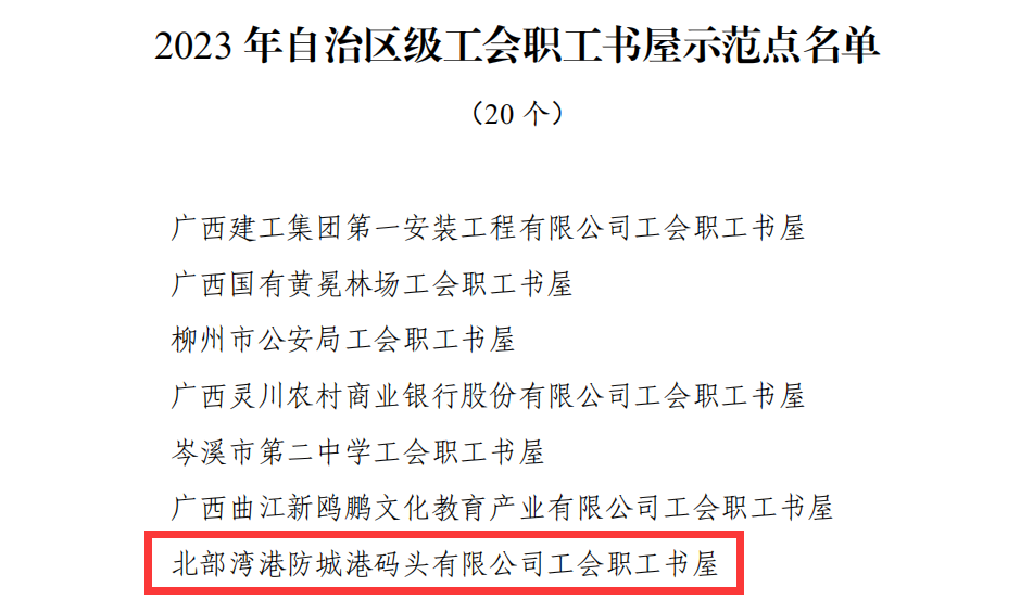 近日,从自治区总工会获悉,防城港码头工会职工书屋获评“2023年自治区级工会职工书屋示范点”。全区共有20家职工书屋获此殊荣。